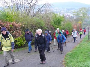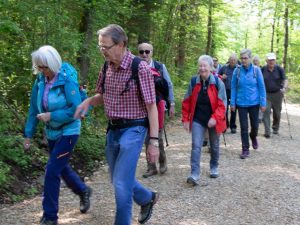 Das schöne Wetter am 1. Mai führte dazu, dass rund 45 Personen an diesem Tag sich am Postplatz sammelten und die Wanderung via Reservoir Spitalholz den Berg hinauf begannen.
