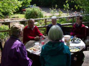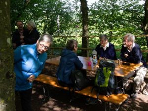 Die Sonne versteckte sich mit der Zeit hinter den Bäumen, so dass wir unsere Tische an besonnte Plätze verschoben. Am späteren Nachmittag begannen wir aufzuräumen und die ersten machten sich auf den Heimweg.